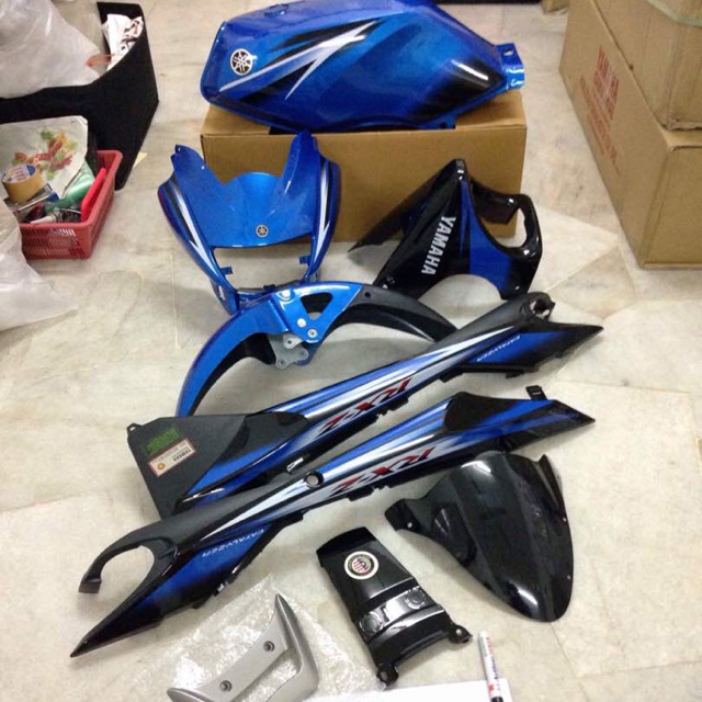 Yamaha rxz catalyser body set full lampu bracket spakbor hly biru. Body set rxz catalyzer biru putih hld. Coverset zr 135 rxz catalyzer biru putih rajaa highway facebook .